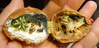 Скорлупа грецкого ореха с микроминиатюрой внутри. Тема была новогодняя, но в итоге ни намёка на ёлку и мандарины нет =)