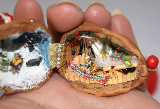 Another walnut shell filled with micro stuff. It was a winter theme - but this time it's not a classical "fireplace and firtree", it's an old Russian style winter! =)